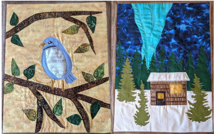 The blocks in this quilt were done with raw-edge applique and thread painting. I love the creativity of picture or landscape quilts.
