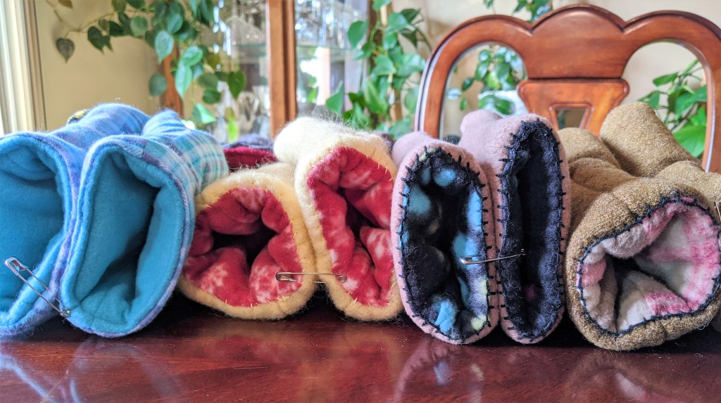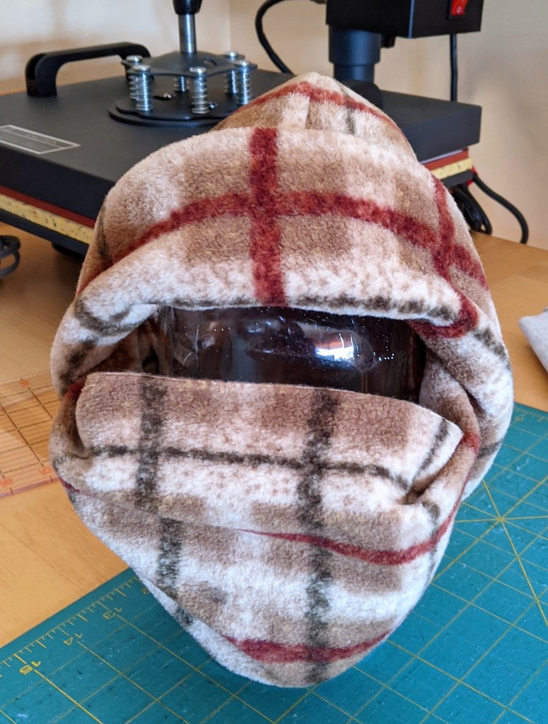 Show your hands some love! These mittens are made of wool or flannel outside and fleece inside. With a third layer in between, these mittens will keep you toasty even in a northern ‘Sota winter! Don’t you just wanna slip your hands inside there?When I made this pattern I intended the mask to be used in our brutal ‘Sota winters. It can also be tucked inside for a plain ‘chook’. Made of fleece. One I made with a little fleece tassel, for the kiddies. Or not. We don’t judge here.Super warm double-layer fleece chook with face mask. The mask can be worn under chin or tucked into hat also.Masked chook-embroidered with business name.