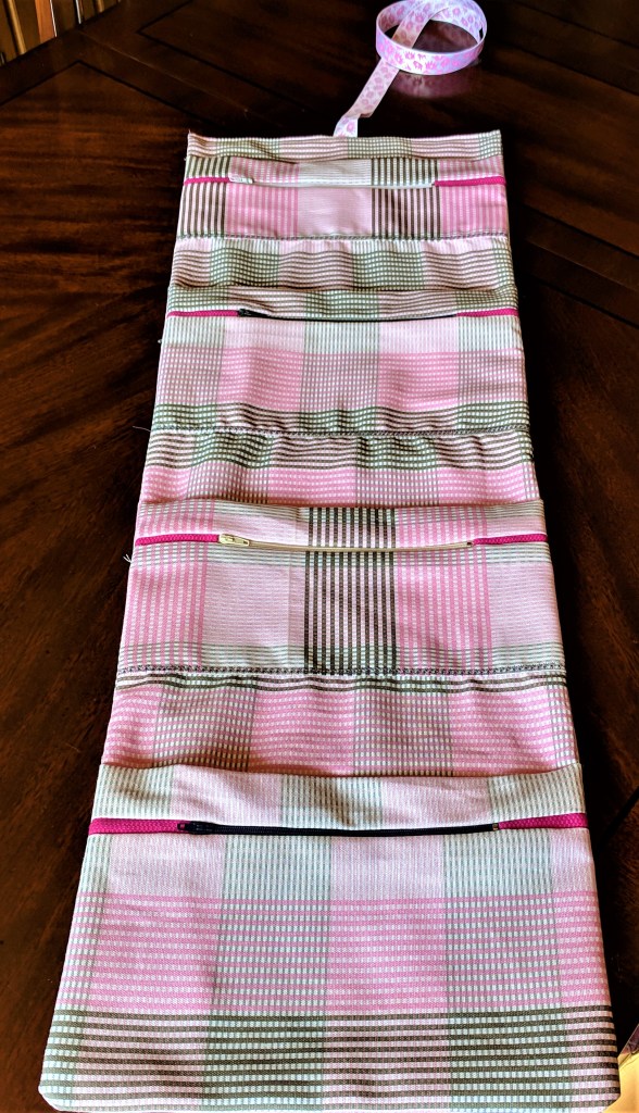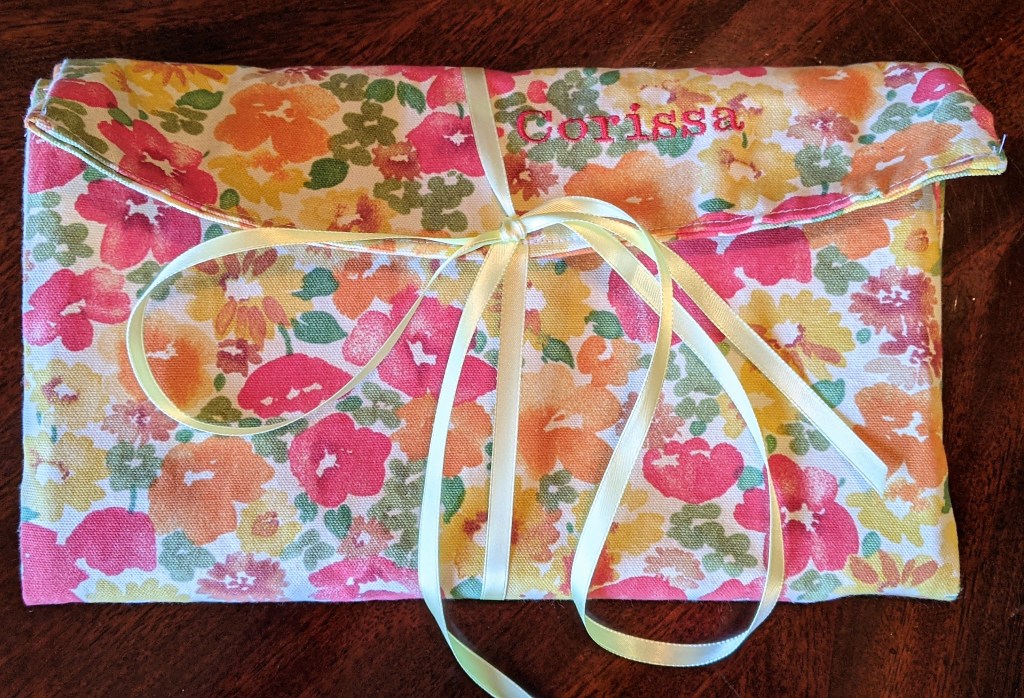 This was a travel bag made for a bride. The pockets were filled with sample-sized items to take on the honeymoon.