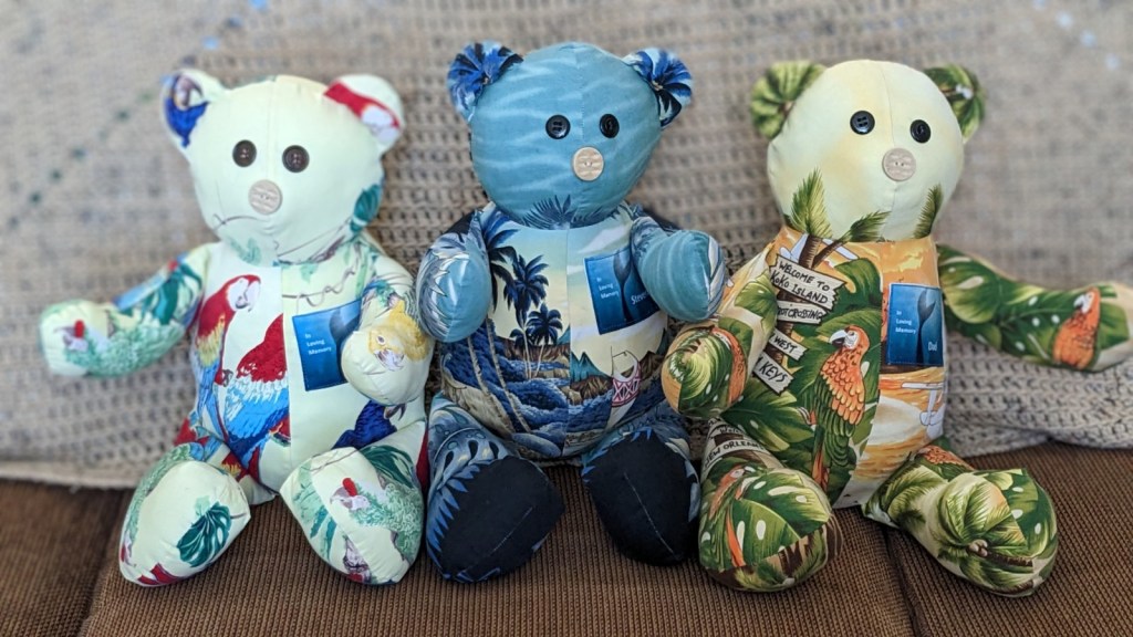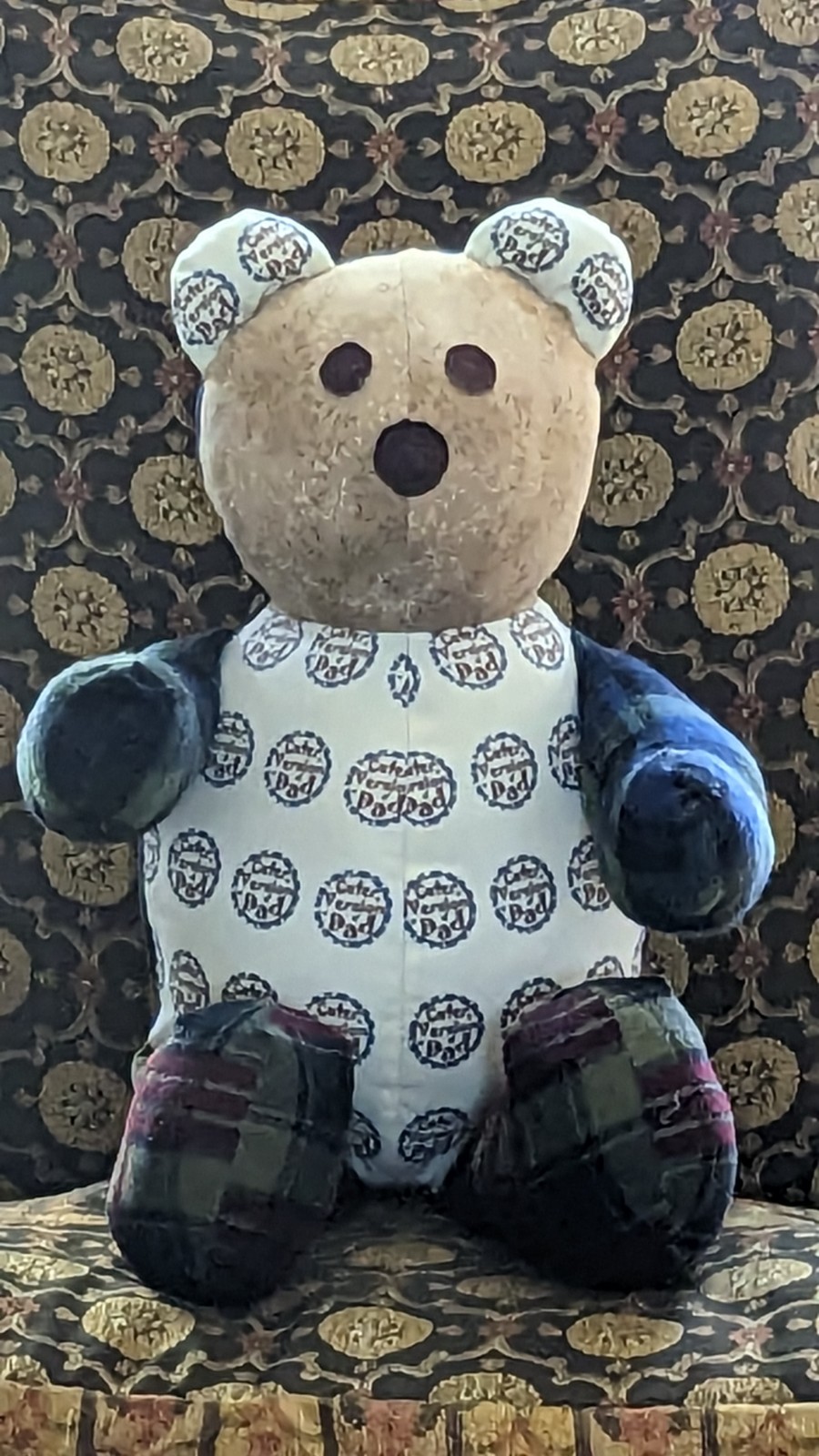 What a great way to memorialize a loved one–a keepsake bear. These memory bears are constructed from the clothing of a loved on. We take care to focus on the patterns or prints of the material, and take all necessary steps to ensure a long life.