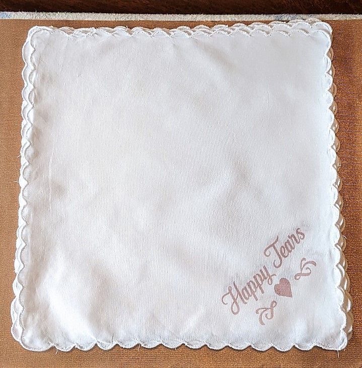 This was a new one for me! The bride had a very specific color, which required a lot of steps. But eventually we got it spot on and now her special guests will have a lovely, dainty hanky with which they can dry their happy tears!