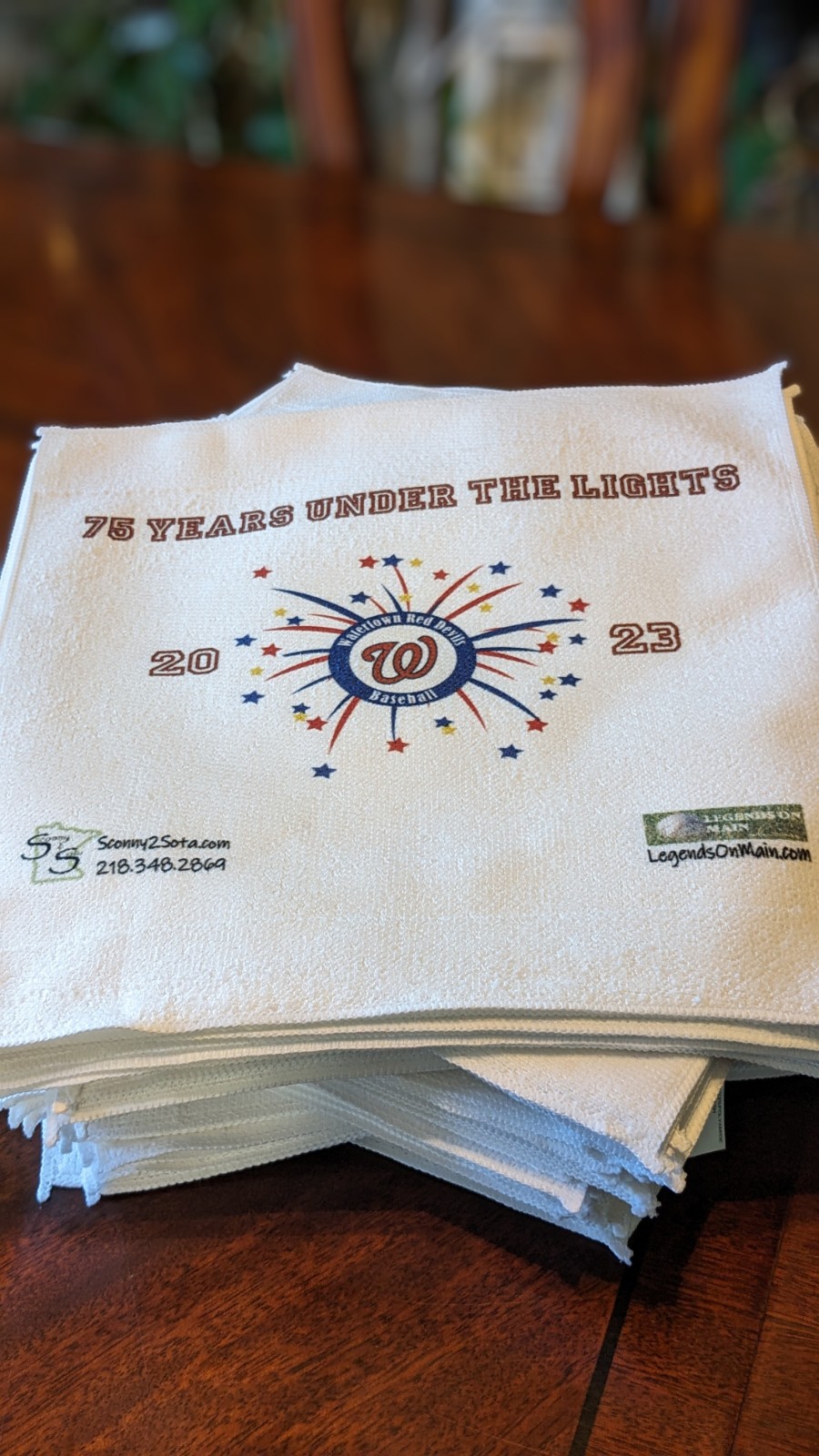 This was such a fun project! We partnered with the Watertown Red Devils Baseball team to celebrate their 75th year of playing ball under the lights. We provided 100 microfiber cloths to the team for handing out to the kids in attendance. Rumor has it they’ve been spotted at all the games since–hanging out of pockets, waving in the air, and even being used as a hair tie! You just gotta love creativity!