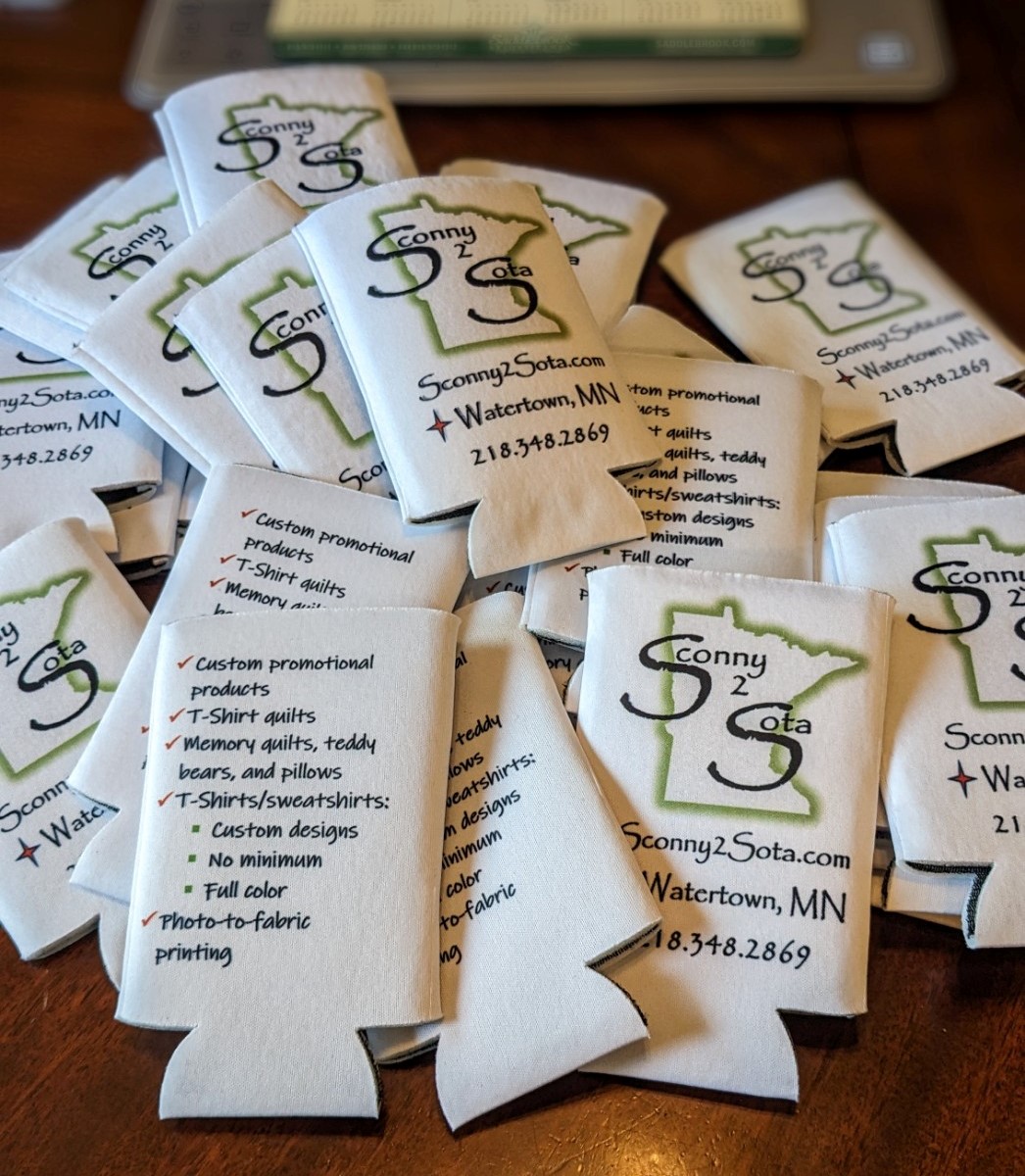 These slim can koozies are a new product for Sconny2Sota. They are made to fit the slim seltzers and beer cans but can also be used on bottles. They are printed in full color through the sublimation printing/heating process.